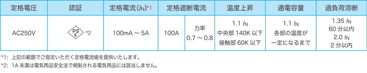 PSEマーク AC250V 普通溶断 4.6×16mm管形ヒューズ