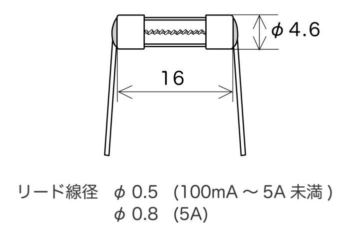 PSEマーク AC250V 耐ラッシュ 4.6×16mmリード付管形ヒューズ