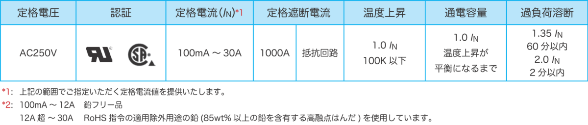 UL/CSA認証 AC250V 耐ラッシュ 10.3×38.1mm 管形ヒューズ